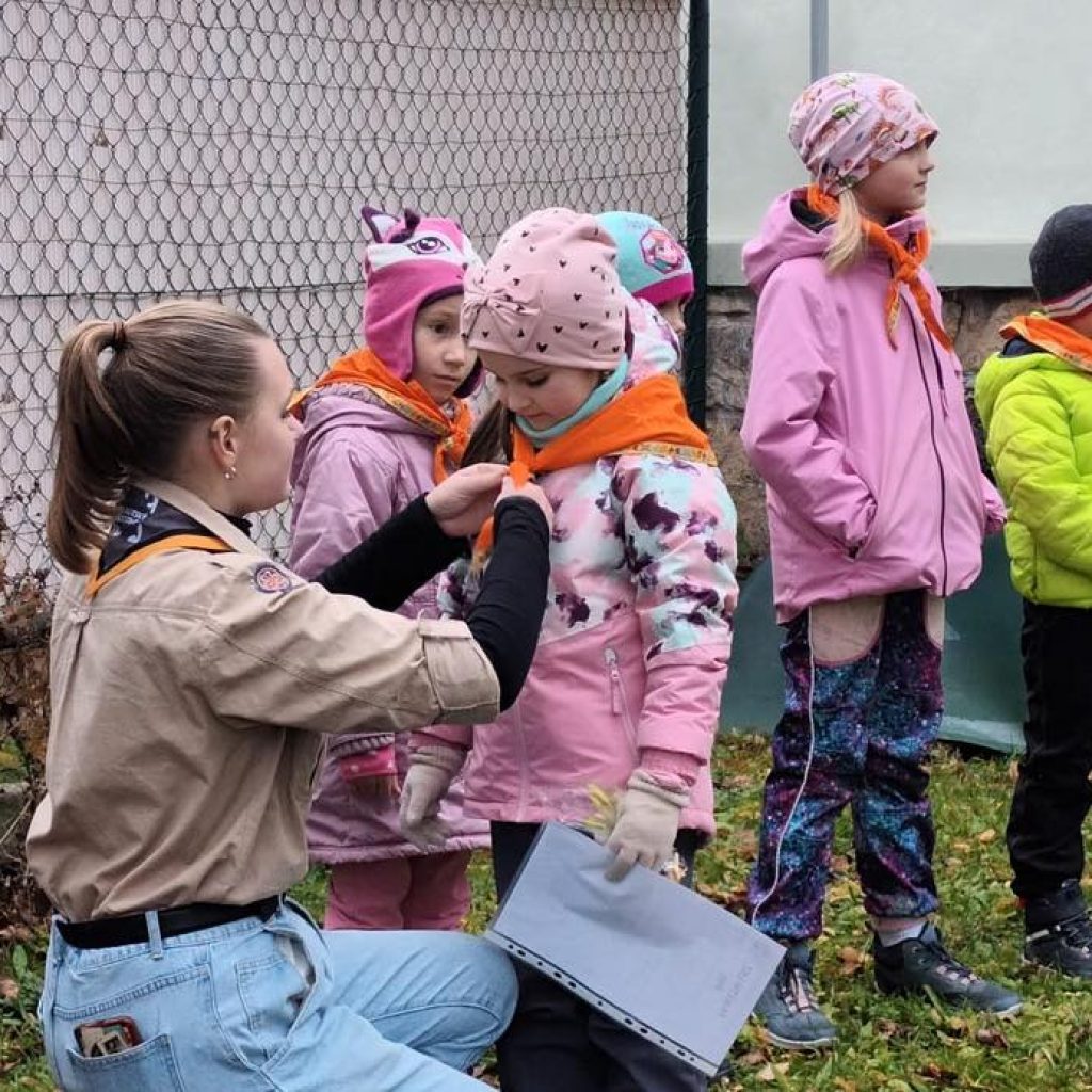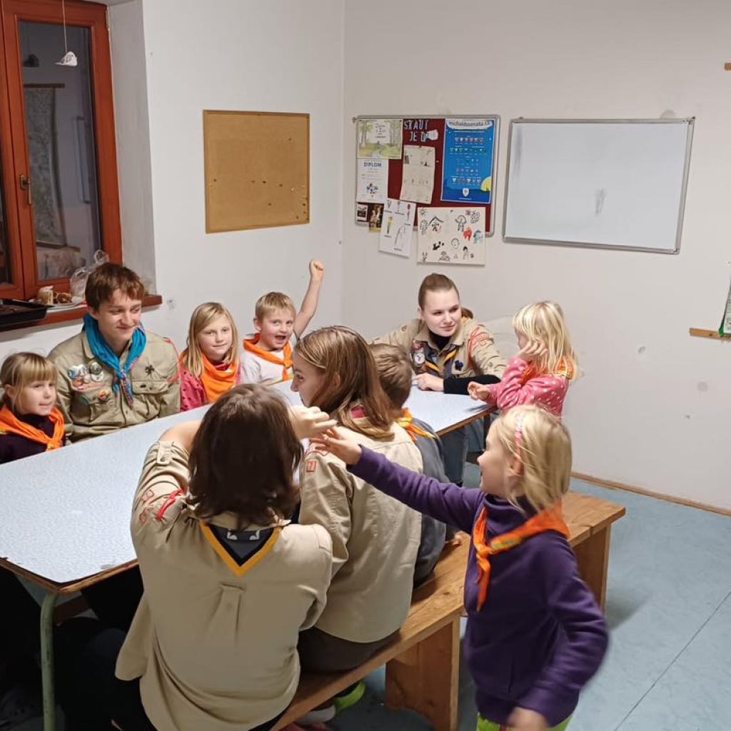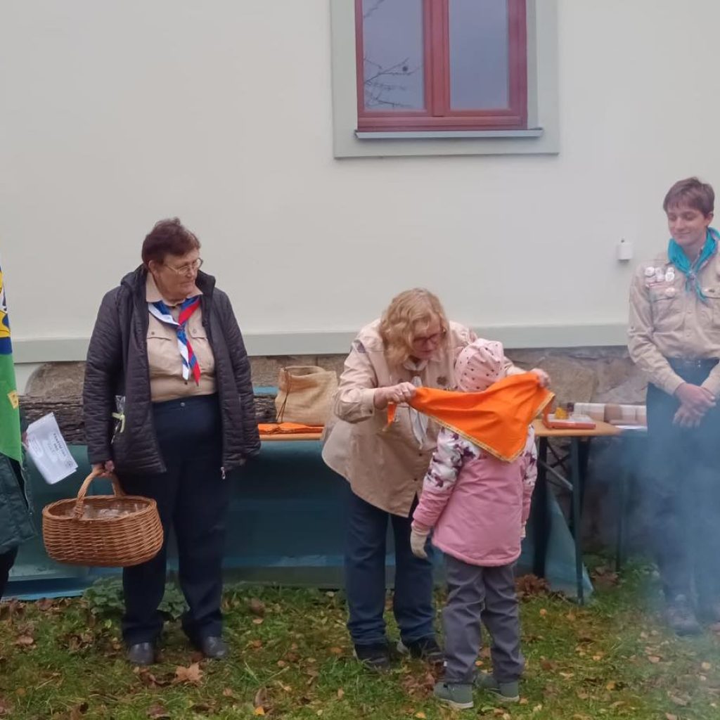 Měli jsme v klubovně rušnou neděli… Začalo to vítáním benjamínků (těch nejmenších) do naší velké skautské rodiny. U slavnostního ohně dostali oranžový šátek, nějakou tu sladkost jako též i povzbuzení na svou další cestu v našem kruhu. Bylo v tom možná trochu trémy, ale hlavně velká radost z nového začátku.